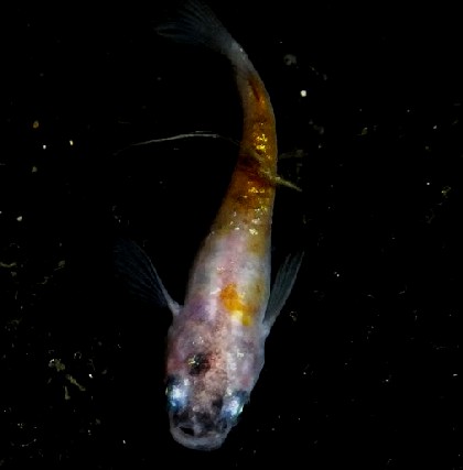 | 煌彩金系 超短、目黒、出目等 青母体を基調に、背に黄金色の輝きをした種を、 JKめだかでは煌彩金系と称し認定している。 背鰭なしも含まれる |