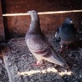 | 2002年6月1日分 川上氏が自鳩舎に白川ベルランジェ系を収容した際に、それ以外の血統は倶楽部の学生競翔家に譲るとの白川氏の遺言通り、その中の2羽の鳩を香月は貰ってきた。その血統はシューマン系で、この2羽を香月鳩舎の異血導入とするつもりであった。香月鳩舎も同交配3年目を迎え、同じ血では、何年も当り交配は出来ない壁に突き当たろうとしていた。この2羽は、まさに香月にとってうってつけの異血導入と思えた。さて、香月の持ち帰った鳩だが、その成績を見て、まず、香月自身が驚いた。白川氏使翔では、白川系と、恐らく白竜、ネバー号以外に無いであろう1000キロ連合会優勝を2羽とも記録していた、取り分け優秀な競翔鳩だったからである。更に生後5年と若く、白川氏が最後に使翔した鳩達でもあった。恐らく、白川系異血導入への、試し腹・・試験的に導入された競翔鳩であったのだろう。川上氏も、良い狙いだね・・香月にそう言った。